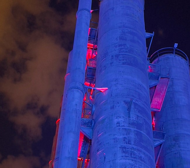 Entrando nell’area archeologica e seguendo il percorso che porta al distillatore si accede a un secondo piano percettivo. Già dal gazometro G3 l’architettura del sito si presenta in tutta la sua maestosa verticalità, svettando sugli edifici circostanti, con il brutalismo della materia nuda e l’essenzialità della forma.