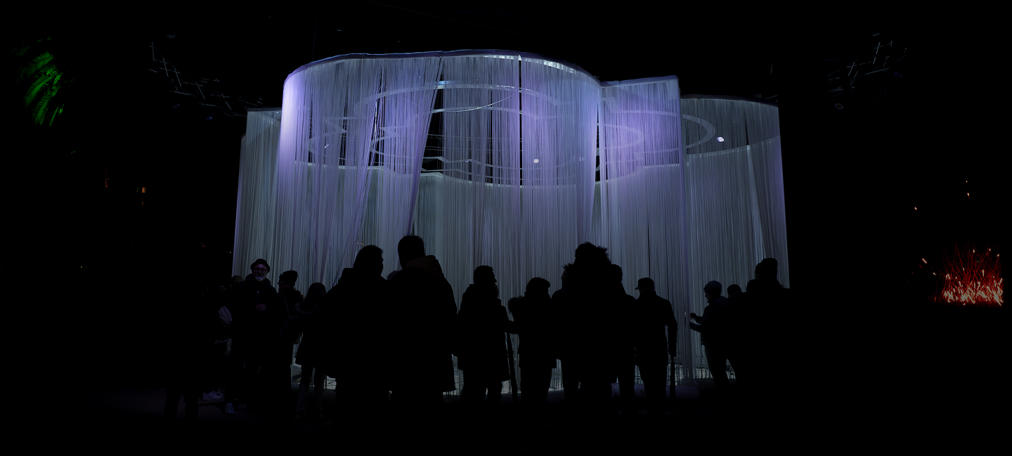 Le luci, i suoni, il fumo che invade il parterre, lasciando solo intravedere dettagli di potente bellezza, entrano in gioco come attori di una nuova narrazione che, nell’ancorarsi alla memoria riesce a stabilire nuovi scenari interpretativi creando un ponte con i più recenti linguaggi della contemporaneità.